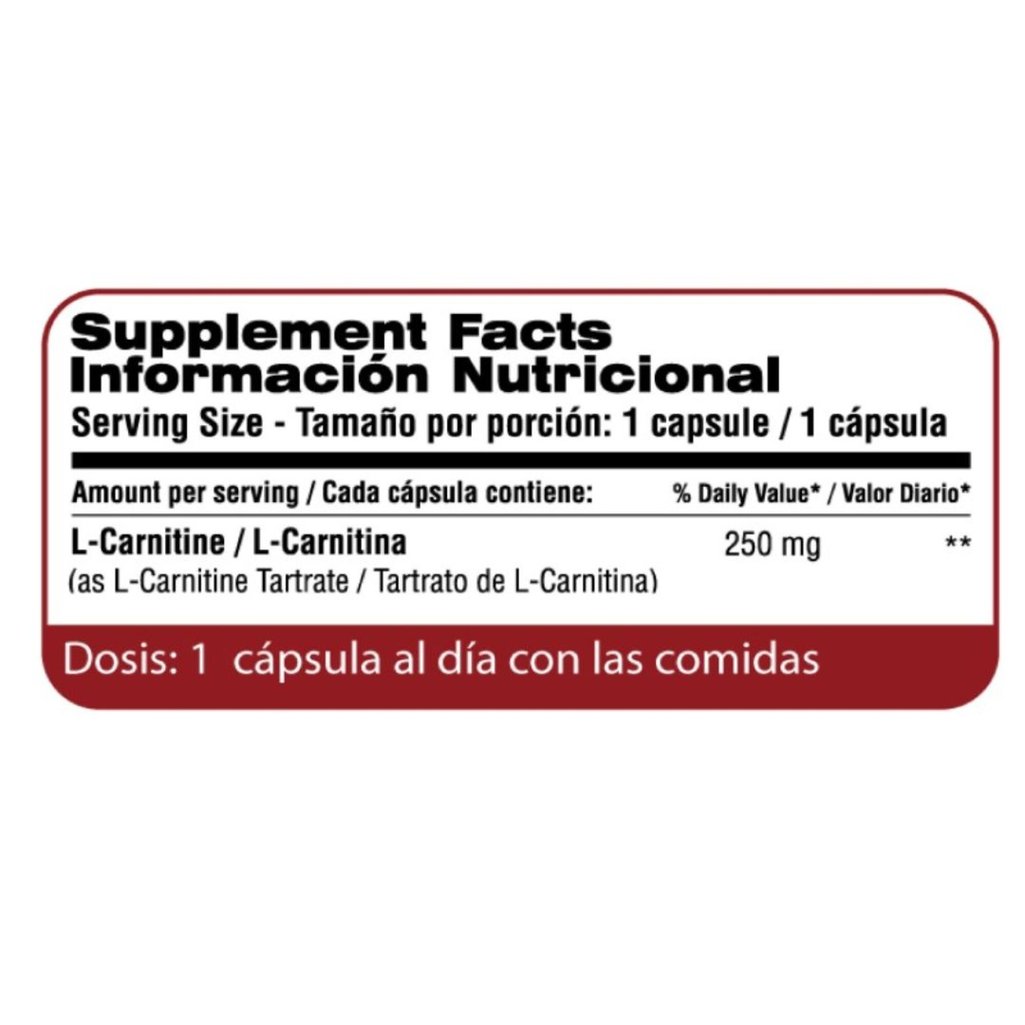 Suplemento dietario formulado con Tartrato de L-Carnitina, un aminoácido que participa en la producción de energía al ayudar al transporte de ácidos grasos hacia las mitocondrias. Contribuye al metabolismo energético y al mantenimiento de un estilo de vida activo.